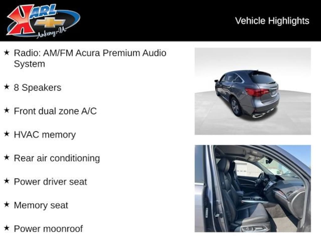 At Karl Chevrolet we want to help you find the best new or used car in Ankeny that suits your needs. Check out the 2020 Acura MDX For Sale in Ankeny, IA. When you buy a new car at Karl Chevrolet you know you're finding a vehicle you can rely on. We have a great selection of Platinum Quality Pre-Owned Vehicles. We also pride ourselves in creating a friendly atmosphere and reliable new car dealership that you can trust. Call us with any questions about our 2020 Acura MDX and our experts will be glad to help you! (515) 299-4300. *Equipment and options are generated by a 3rd party vendor, exact vehicle options may vary. Please see a salesperson for complete details and vehicle information.