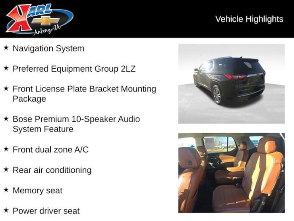 Don't miss your chance to experience the exceptional quality and value of this 2020 Chevrolet Traverse High Country. Visit Karl Chevrolet of Ankeny today and let our knowledgeable sales team help you find the perfect vehicle to suit your needs.