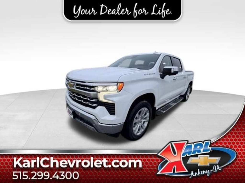 Recent Arrival! CARFAX One Owner, Local Trade & Sold New at Karls! Equipped With Running Boards, Tonneau Cover & Mud Flaps! Clean CARFAX. Certified. Summit White 2022 Chevrolet Silverado 1500 LTZ 4WD CREW CAB 147 LTZ 3.0L I6 10-Speed Automatic, 4WD, Black Leather, 12.3 Multicolor Reconfigurable Digital Display, 15 Diagonal Multicolor Head-Up Display, 2 USB Data Ports, 2nd Row Heated Outboard Seats, Adaptive Cruise Control, Apple CarPlay/Android Auto, Auto High-beam Headlights, Auto-Dimming Inside Rear-View Mirror, Auto-Locking Rear Differential, Bed View Camera, Bluetooth® For Phone, Chevrolet Connected Access Capable, Chrome Mirror Caps, Color-Keyed Carpeting Floor Covering, Compass, Deep-Tinted Glass, Driver Memory, Dual Rear USB Ports (Charge Only), Electric Rear-Window Defogger, Electronic Cruise Control, Enhanced Cooling Radiator, EZ Lift Power Lock & Release Tailgate, Floor Mounted Center Console, Forward Collision Alert, Front dual zone A/C, Front Frame-Mounted Black Recovery Hooks, Front LED Fog Lamps, Front Rainsensing Wipers, Front Rubberized Vinyl Floor Mats, HD Surround Vision, Heated Driver & Front Outboard Passenger Seats, Heated Steering Wheel, Heavier Duty Rear Springs, High Capacity Suspension Package, Hitch Guidance, Hitch Guidance w/Hitch View, Increased RGAWR, Integrated Trailer Brake Controller, Keyless Open & Start, Lane Keep Assist w/Lane Departure Warning, Leather Wrapped Steering Wheel, LED Cargo Area Lighting, LTZ Convenience Package, LTZ Convenience Package II, LTZ Plus Package, Max Trailering Package, Multi-Flex Tailgate, OnStar & Chevrolet Connected Services Capable, Outside Heated Power-Adjustable Mirrors, Perimeter Lighting, Power driver seat, Power Sliding Rear Window w/Rear Defogger, Power Tailgate, Power Tilt & Telescoping Steering Column, Power windows, Preferred Equipment Group 1LZ, Premium Bose 7-Speaker Sound System, Rear Camera Mirror, Rear Cross Traffic Alert-Braking, Rear Pedestrian Detection, Rear Rubberized-Vinyl Floor Mats, Rear Wheelhouse Liners, Remote Vehicle Starter System, Safety Alert Seat, Safety Package, SiriusXM w/360L, Standard Tailgate, Steering Wheel Audio Controls, Technology Package, Theft Deterrent System (Unauthorized Entry), Trailer Camera Provisions, Trailer Side Blind Zone Alert, Trailering App, Trailering Package, Ultrasonic Front & Rear Park Assist, Universal Home Remote, Up-Level Rear Seat w/Storage Package, Wheels: 20 x 9 Sterling Silver Painted Aluminum, Wi-Fi Hot Spot Capable, Wireless Charging, Wireless Phone Projection. 22/26 City/Highway MPG 10-Speed Automatic 4WD