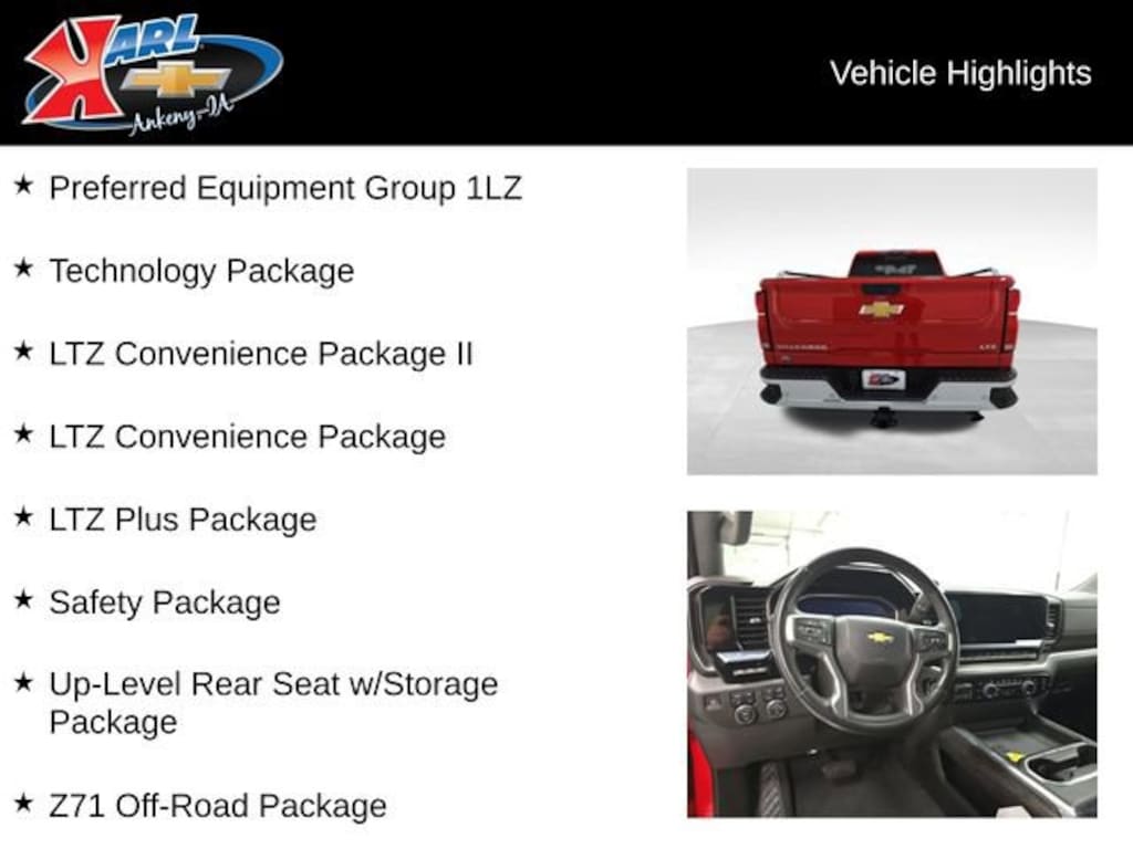 Certification Program Details: Karl Chevrolet of Ankeny, The Nation's #1 CarBravo Certified Dealer! Every CarBravo Certified vehicle includes: Comprehensive 126-Point Inspection Professionally inspected by factory-trained technicians to meet strict mechanical, safety, and cosmetic standards. 12-Month / 12,000-Mile Bumper-to-Bumper Limited Warranty Enjoy added peace of mind with extensive coverage from the day you drive off the lot. 24/7 Roadside Assistance & Courtesy Transportation Flat tire? Dead battery? Need a tow? You're covered anywhere, anytime throughout the warranty period. Vehicle History & Title Guarantee Clean title, completed safety recalls, and a full CARFAX® or AutoCheck® report provided for complete transparency. 10-Day / 500-Mile Exchange Promise If you don't absolutely love it, bring it back and exchange it no hassle, no stress. Experience peace of mind and premium protection exclusively from Karl Chevrolet of Ankeny, the Nation's #1 CarBravo Dealer!
