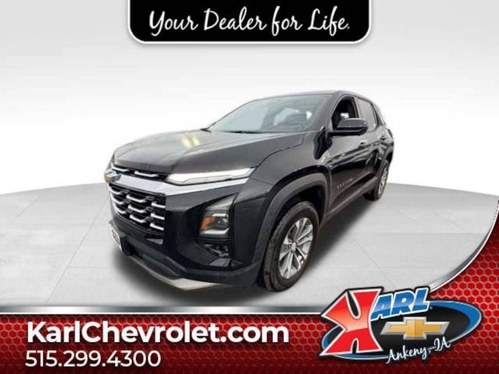 Recent Arrival! CARFAX One-Owner, Local Trade, Sold New at Karls & All Services Done at Karls! Clean CARFAX. Certified. Mosaic Black Metallic 2025 Chevrolet Equinox LT AWD 4DR LT W/2LT 1.5L DOHC AWD, 6 Speakers, Auto High-beam Headlights, Front Fog Lamps, HD Surround Vision, Heated Driver & Front Passenger Seats, Heated steering wheel, Navigation System, Power windows, Preferred Equipment Group 2LT, Radio: 11.3 Diagonal Advanced Color LCD Display, Rear Camera Mirror Washer, Rear Pedestrian Alert, Safety & Technology Package, SiriusXM, Traffic Sign Recognition. 24/29 City/Highway MPG 8-Speed Automatic AWDAt Karl Chevrolet we want to help you find the best new or used car in Ankeny that suits your needs. Check out the 2025 Chevrolet Equinox For Sale in Ankeny, IA. When you buy a new car at Karl Chevrolet you know you're finding a vehicle you can rely on. We have a great selection of Platinum Quality Pre-Owned Vehicles. We also pride ourselves in creating a friendly atmosphere and reliable new car dealership that you can trust. Call us with any questions about our 2025 Chevrolet Equinox and our experts will be glad to help you! (515) 299-4300. *Equipment and options are generated by a 3rd party vendor, exact vehicle options may vary. Please see a salesperson for complete details and vehicle information.Certification Program Details: Karl Chevrolet of Ankeny, your newest CarBravo dealer, where platinum quality vehicles and unmatched benefits come together! -Comprehensive Limited Bumper to Bumper Warranty. -24/7 Roadside Assistance: -Multi-Point Vehicle Inspection: Every vehicle undergoes a Platinum Quality Certified Inspection known throughout the industry to ensure top quality. -Vehicle Exchange Program. Within 10-Days and 500 miles -Complimentary Vehicle History Report -Nationwide Dealer Network Support: Enjoy the backing of the extensive CarBravo and GM dealership network. -OnStar and SiriusXM Trials: Enjoy connected services and entertainment with included trial subscriptions. -Terms and conditions may apply. With every vehicle purchased, you'll enjoy the peace of mind that comes with a limited warranty, 24/7 roadside assistance, and a comprehensive vehicle inspection.