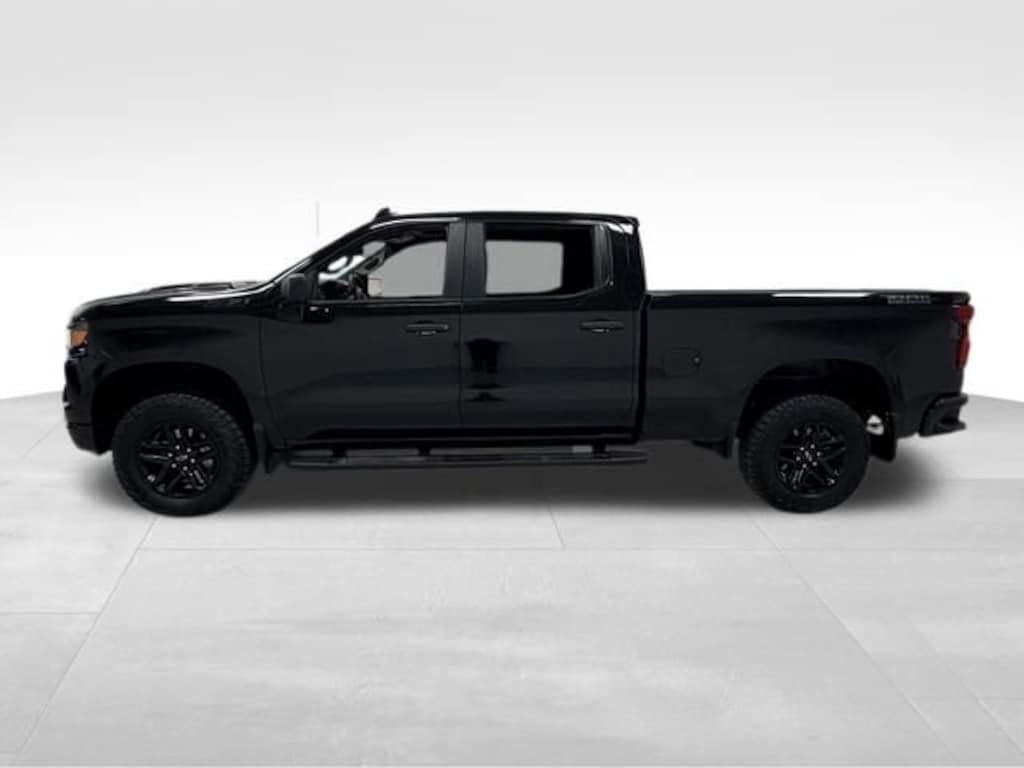 Recent Arrival! CARFAX One-Owner, Local Trade & Sold New at Karls! Equipped With Running Boards & Mud Flaps! Clean CARFAX. Certified. Black 2025 Chevrolet Silverado 1500 Custom Trail Boss 4WD CREW CAB 147 CUSTOM TRAIL BOSS 3.0L I6 8-Speed Automatic, 4WD, Black Cloth, 10-Way Power Driver Seat w/Lumbar, 3.5 Monochromatic Display Driver Info Center, All-Weather Floor Liner (LPO) (AAK), Apple CarPlay/Android Auto, Auto High-beam Headlights, Auto-Locking Rear Differential, Black Dual Exhaust Tips, Bluetooth® For Phone, Chevytec Spray-On Black Bedliner, Color-Keyed Carpeting Floor Covering, Custom Convenience Package, Deep-Tinted Glass, Dual Exhaust w/Black Exhaust Tips, Dual Rear USB Ports (Charge Only), Electric Rear-Window Defogger, Electronic Cruise Control, EZ Lift Power Lock & Release Tailgate, Forward Collision Alert, Front Frame-Mounted Black Recovery Hooks, Front Rubberized Vinyl Floor Mats, HD Rear Vision Camera, Heavy-Duty Air Filter, Hill Descent Control, Hitch Guidance, Lane Keep Assist w/Lane Departure Warning, LED Cargo Area Lighting, Manual Tilt Wheel Steering Column, Midnight Edition, OnStar Services Capable, Performance Red Recovery Hooks, Power driver seat, Power windows, Preferred Equipment Group 2CX, Rear 60/40 Folding Bench Seat (Folds Up), Rear Rubberized-Vinyl Floor Mats, Remote Keyless Entry, Remote Vehicle Starter System, Silver-Hammer Interior Trim Kit (LPO), SiriusXM Trial Subscription, Standard Tailgate, Suspension Package, Teen Driver, Theft Deterrent System (Unauthorized Entry), Tire Pressure Monitoring System, Trailering Package, Wheels: 18 x 8.5 Black Painted Aluminum, Wi-Fi Hot Spot Capable. 16/17 City/Highway MPG 8-Speed Automatic 4WD