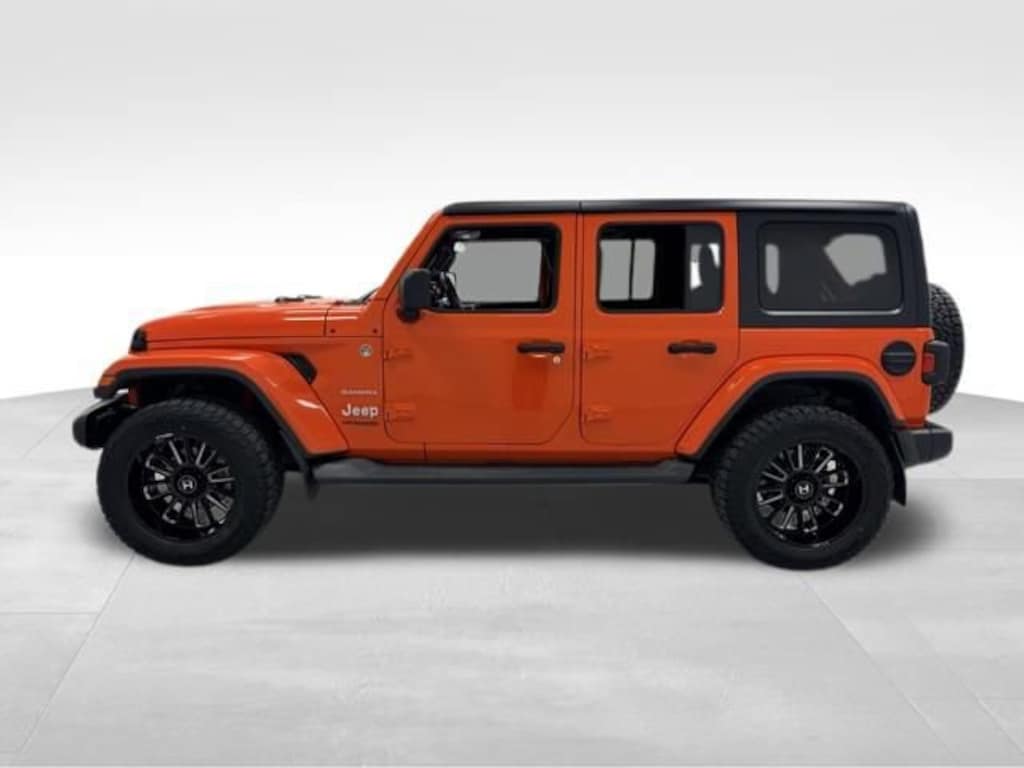 This 2020 Jeep Wrangler Unlimited Sahara SAHARA 4X4 in eye-catching Orange is a true off-road icon that combines rugged capability with modern comfort and convenience. Powered by a 2.0L I4 DOHC engine paired with an 8-speed automatic transmission, this Wrangler delivers impressive 4x4 performance and efficiency, with an EPA-estimated 21 city/22 highway MPG.
