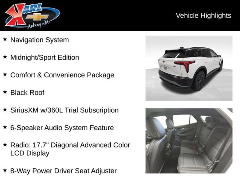 Summit White 2026 Chevrolet Blazer EV LT 4D Sport Utility Electric Motor 1-Speed Automatic AWD Price includes: $1000 - Chevrolet Consumer Cash Program. Exp. 02/02/2026