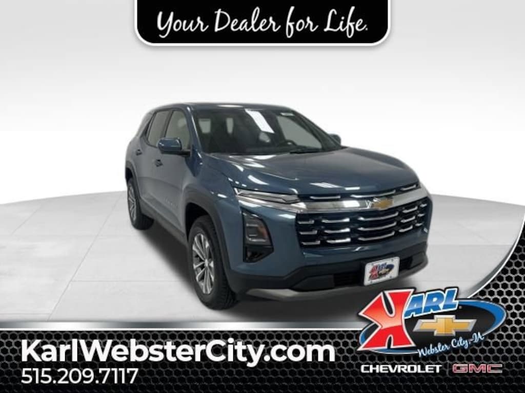 Factory MSRP: $35,790 $550 off MSRP!AWD. Recent Arrival! Lakeshore Blue 2026 Chevrolet Equinox LT 4D Sport Utility 1.5L DOHC 25/29 City/Highway MPG 8-Speed Automatic AWDKarl Chevrolet Buick GMC of Webster City has access to this vehicle, as well as the largest inventory in Northwest Iowa. We are focused on getting you in the right vehicle that fits your needs and are excited to bring our Dealer for Life® way of doing business to Webster City Iowa. If you are interested in this vehicle, or any of our thousands of options please call us today at 515.832.6638 and ask to speak with our sales team.