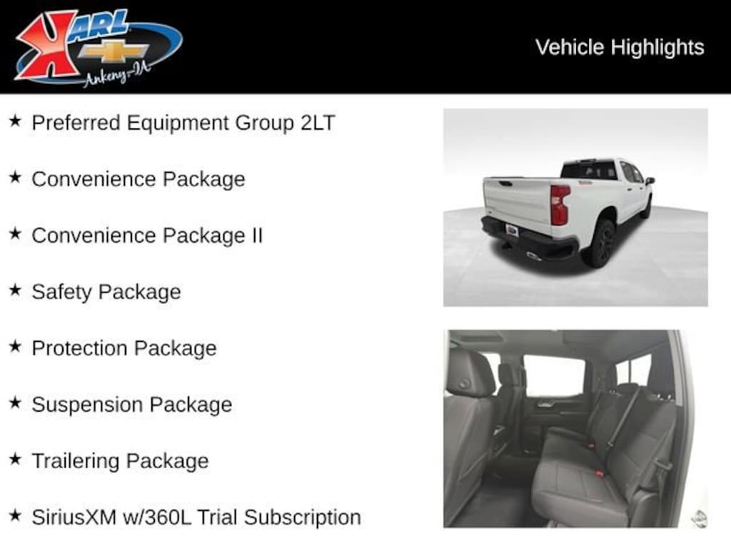 At Karl Chevrolet, we want to help you find the best new or used car in Ankeny that suits your needs. When you buy a new car at Karl Chevrolet, you know you're finding a vehicle you can rely on. We have a great selection of Platinum Quality Pre-Owned Vehicles. We also pride ourselves in creating a friendly atmosphere and a reliable Dealership that you can trust. Call us and our experts will be glad to help you! (515) 299-4300. *Equipment and options are generated by a 3rd party vendor, exact vehicle options may vary. Please see a salesperson for complete details and vehicle information. Price includes: $1750 - Chevrolet Bonus Cash. Exp. 03/02/2026 $2500 - Chevrolet Consumer Cash Program. Exp. 03/02/2026