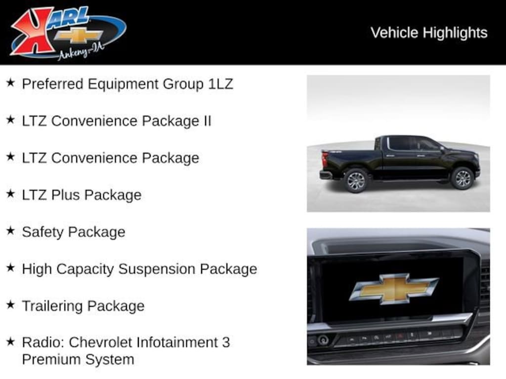 Experience the pinnacle of Chevrolet engineering and design in the 2026 Silverado 1500 LTZ. Visit our showroom today and let us demonstrate how this exceptional truck can elevate your driving experience. Price includes: $1250 - Chevrolet Consumer Cash Program. Exp. 04/30/2026 $750 - Chevrolet Bonus Cash. Exp. 04/30/2026 Price includes $1,451 dealer added accessories.