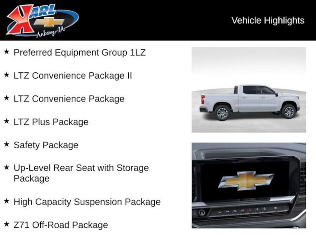 At Karl Chevrolet, we want to help you find the best new or used car in Ankeny that suits your needs. When you buy a new car at Karl Chevrolet, you know you're finding a vehicle you can rely on. We have a great selection of Platinum Quality Pre-Owned Vehicles. We also pride ourselves in creating a friendly atmosphere and a reliable Dealership that you can trust. Call us, and our experts will be glad to help you! (515) 299-4300. *Equipment and options are generated by a 3rd party vendor, exact vehicle options may vary. Please see a salesperson for complete details and vehicle information. Price includes: $4250 - Chevrolet Consumer Cash Program. Exp. 04/30/2026 $500 - Chevrolet Bonus Cash. Exp. 04/30/2026