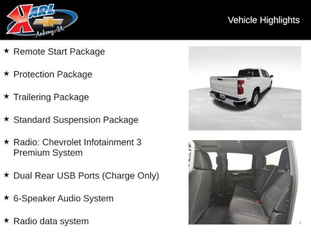 Factory MSRP: $58,740 $5,549 off MSRP! 10-Speed Automatic, 4WD, Black Cloth, 10-Way Power Driver Seat w/Lumbar, 40/20/40 Front Split-Bench Seat, 6-Speaker Audio System, ABS brakes, Automatic temperature control, Brake assist, Chevytec Spray-On Black Bedliner, Dual Rear USB Ports (Charge Only), Electric Rear-Window Defogger, Electronic Stability Control, Forward Collision Alert, Front reading lights, Front Rubberized Vinyl Floor Mats, Heated door mirrors, Heated Driver & Front Outboard Passenger Seats, Heated Power-Adjustable Outside Mirrors, Hitch Guidance, Inside Rear-View Mirror w/Tilt, Lane Keep Assist w/Lane Departure Warning, Outside temperature display, Overhead console, Passenger door bin, Power Front Windows w/Driver Express Up/Down, Power Front Windows w/Passenger Express Down, Protection Package, Radio data system, Radio: Chevrolet Infotainment 3 Premium System, Rear Wheelhouse Liners, Remote Start Package, Remote Vehicle Starter System, Standard Suspension Package, Telescoping steering wheel, Theft Deterrent System (Unauthorized Entry), Tilt steering wheel, Trailering Package, Wheels: 17 x 8 Bright Silver Painted Aluminum.