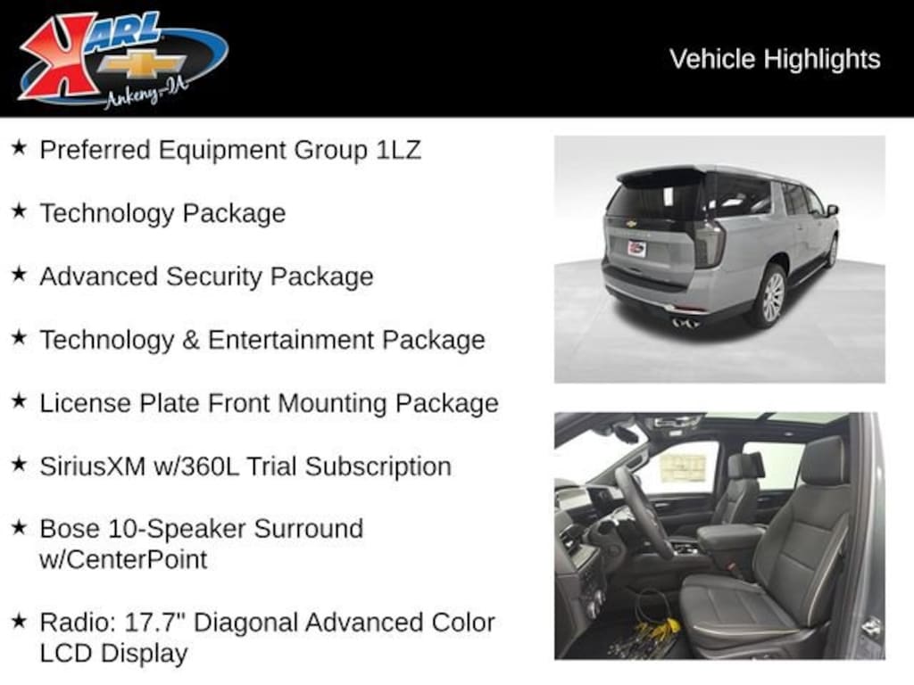 Factory MSRP: $90,635 $1,500 off MSRP! 15 Diagonal Multi-Color Head-Up Display, 20 x 9 Polished Aluminum Wheels, 3rd Row 60/40 Power-Folding Split-Bench, 4-Way Power Driver Lumbar Seat Adjuster, 4-Way Power Front Passenger Lumbar Seat Adjuster, 8-Way Power Front Passenger Seat Adjuster, Advanced Security Package, Air Conditioning, Auto-Dimming Inside Rear-View Mirror, Automatic temperature control, AutoSense Hands-Free Power Liftgate, Bose 10-Speaker Surround w/CenterPoint, Brake assist, Bright Front & Rear Door Sill Plates, Chrome Door Handles w/Body-Color Strip, Chrome Mirror Caps, Delay-off headlights, Driver door bin, Driver vanity mirror, Dual Exhaust System, Dual front impact airbags, Dual front side impact airbags, Dual-Pane Power Panoramic Sunroof, Electronic Stability Control, Four wheel independent suspension, Front fog lights, Front LED Fog Lamps, Garage door transmitter, Glass Breakage Sensor, Heated 2nd Row Outboard Seats, Heated Driver & Front Passenger Seats, Heated front seats, Heated Power-Adjustable Outside Mirrors, Heated rear seats, Heated Steering Wheel, Inside Rearview Auto-Dimming Rear Camera Mirror, Interior Camera, LED Headlamps w/LED Daytime Running Lamps, LED Tail Lamps, License Plate Front Mounting Package, Magnetic Ride Control Suspension, Memory Settings, Occupant sensing airbag, Overhead airbag, Perforated Heated & Ventilated Seats, Power door mirrors, Power Liftgate, Power Release 2nd Row Bucket Seats, Power steering, Power Tilt & Telescopic Steering Column, Power windows, Power-Sliding Center Floor Console, Preferred Equipment Group 1LZ, Radio data system, Radio: 17.7 Diagonal Advanced Color LCD Display, Rain sensing wipers, Rear air conditioning, Rear Power Liftgate, Rear Seat Media System, Rear window wiper, Security system, Self-Powered Horn Theft-Deterrent Alarm System, SiriusXM w/360L Trial Subscription, Spoiler, Steering wheel memory, Technology & Entertainment Package, Technology Package, Traction control, Turn signal indicator mirrors, Universal Home Remote, Vehicle Inclination Sensor, Vehicle Interior Movement Sensor, Wheel Locks (Set of 4) (LPO), Wheels: 22 x 9 Manoogian Silver Painted Alum, Wireless Apple CarPlay/Wireless Android Auto, Wireless Phone Charging.