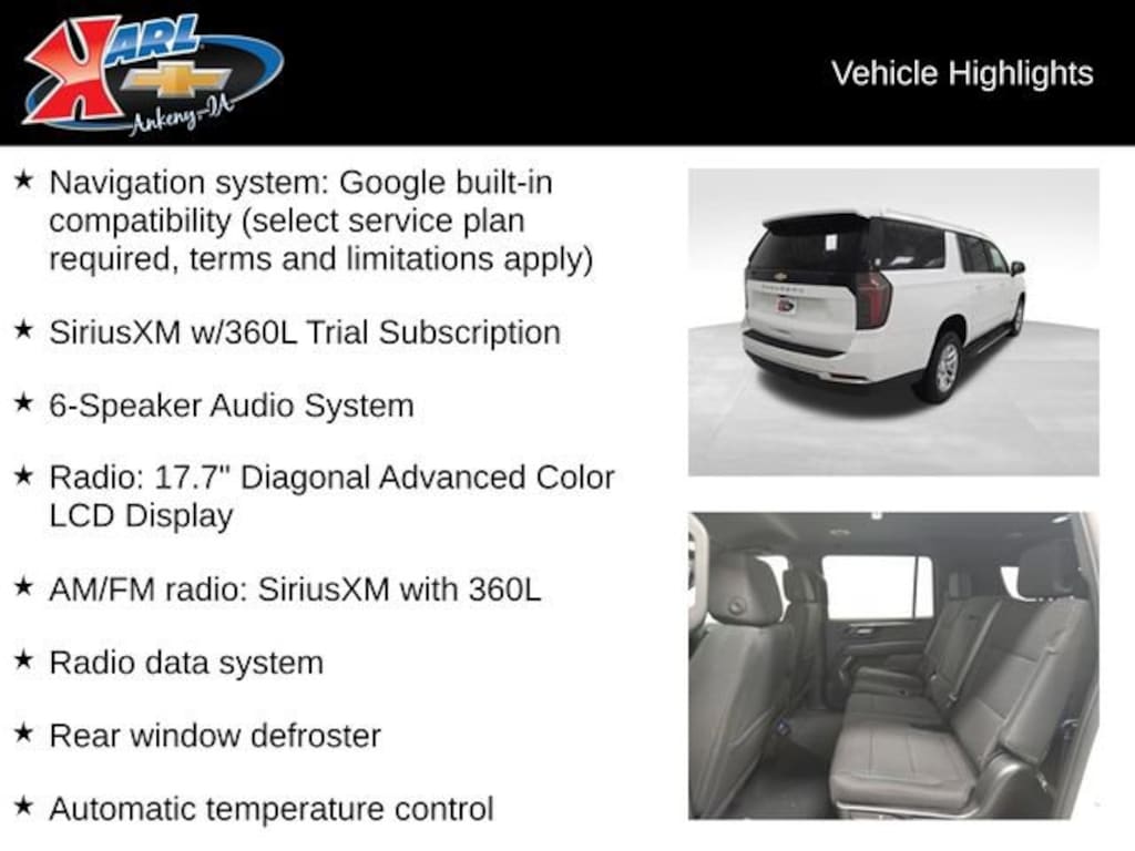 Factory MSRP: $68,495 2 USB Charge/Data Ports in Center Console Delete, 2-Way Driver Power Lumbar Seat Adjuster, 2-Way Front Passenger Power Lumbar Seat Adjuster, 3rd row seats: split-bench, 4-Wheel Disc Brakes, 6-Speaker Audio System, 6-Way Power Front Passenger Seat Adjuster, 8-Way Power Driver Seat Adjuster, Air Conditioning, AM/FM radio: SiriusXM with 360L, Automatic temperature control, Brake assist, Center Floor Console Delete, Driver vanity mirror, Dual front impact airbags, Dual front side impact airbags, Electronic Stability Control, Exterior Parking Camera Rear, Front 40/20/40 Split-Bench Seat, Front Bucket Seats, Front dual zone A/C, Front reading lights, Key Card Delete, Navigation system: Google built-in compatibility (select service plan required, terms and limitations apply), Overhead airbag, Overhead console, Passenger vanity mirror, Power passenger seat, Power steering, Premium Cloth Seat Trim, Premium Smooth Ride Suspension, Radio data system, Radio: 17.7 Diagonal Advanced Color LCD Display, Rain sensing wipers, Rear air conditioning, Rear window defroster, Rear window wiper, Speed control, Speed-sensing steering, Split folding rear seat, Wheels: 18 x 8.5 Bright Silver Painted Aluminum, Wireless Apple CarPlay/Wireless Android Auto.