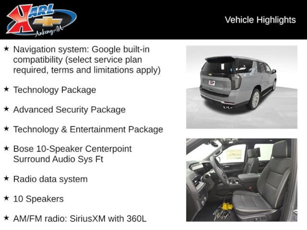 • Advanced Security Package on Premier and High Country, which includes self-powered horn, interior movement sensors, vehicle inclination sensors, glass break sensors and door and liftgate lock shields