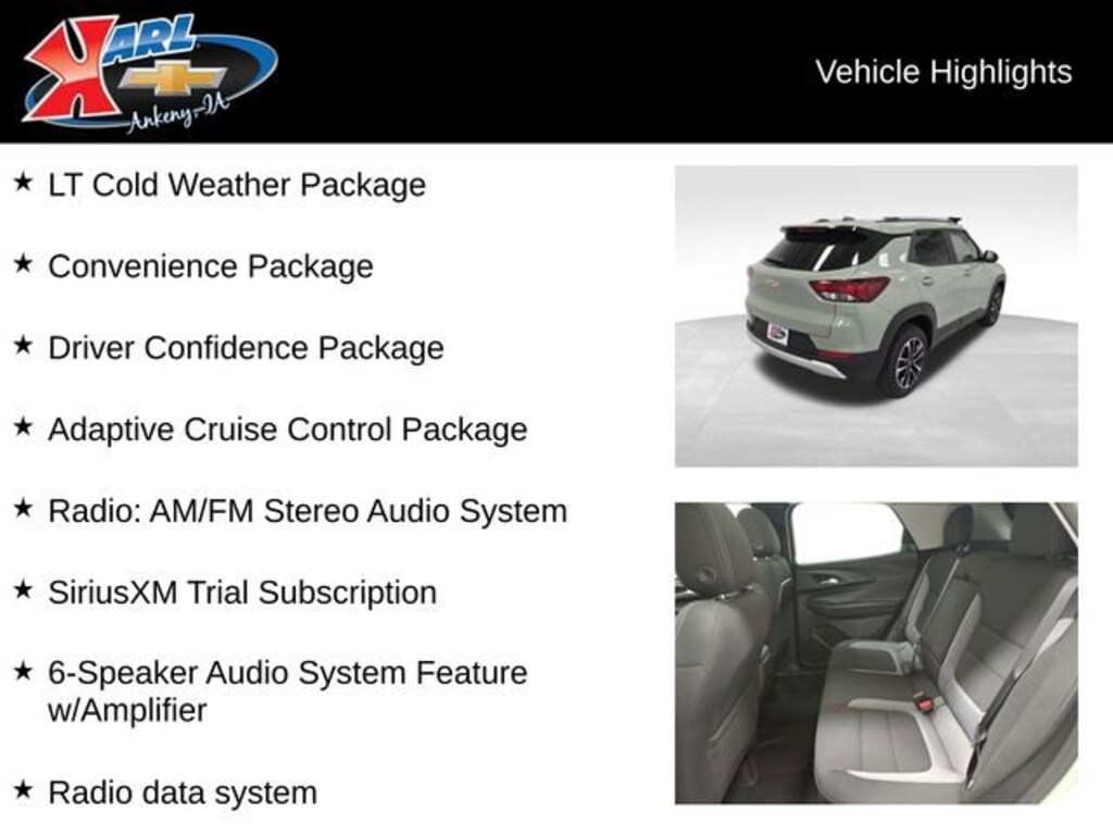 Factory MSRP: $32,865 $905 off MSRP! 26/29 City/Highway MPG 1 Type-A & 1 Type-C USB Charging-Only Ports, 1 Type-A & 1 Type-C USB Ports, 120-Volt Power Outlet, 2-Way Power Driver Lumbar Seat Adjuster, 4-Way Manual Front Passenger Seat Adjuster, 6-Speaker Audio System Feature w/Amplifier, 6-Way Manual Driver Seat Adjuster, 8-Way Power Driver Seat Adjuster, Adaptive Cruise Control, Adaptive Cruise Control Package, Brake assist, Cabin Humidity Sensor, Convenience Package, Dr & Fr Passenger Illuminated Vanity Mirrors, Driver Confidence Package, Driver vanity mirror, Dual front impact airbags, Dual front side impact airbags, Dual-Pane Panoramic Power Sunroof, Electronic Stability Control, Exterior Parking Camera Rear, Flat-Folding Front Passenger Seatback, Front anti-roll bar, Front reading lights, Front wheel independent suspension, Heated door mirrors, Heated Driver & Front Passenger Seats, Heated Steering Wheel, Inside Rear-View Auto-Dimming Mirror, Lane Change Alert w/Side Blind Zone Alert, Low tire pressure warning, LT Cold Weather Package, Overhead airbag, Power Liftgate, Power windows, Radio data system, Radio: AM/FM Stereo Audio System, Rear Center Armrest, Rear Cross Traffic Alert, Rear Park Assist, Rear window wiper, Remote keyless entry, Satin Silver & Chrome Wrapped Shift Knob, Single-Zone Automatic Climate Control, SiriusXM Trial Subscription, Spoiler, Telescoping steering wheel, Tilt steering wheel, Wheels: 17 High Gloss Black Machined Aluminum, Wireless Apple CarPlay/Android Auto, Wireless Charging, Wrapped Steering Wheel.