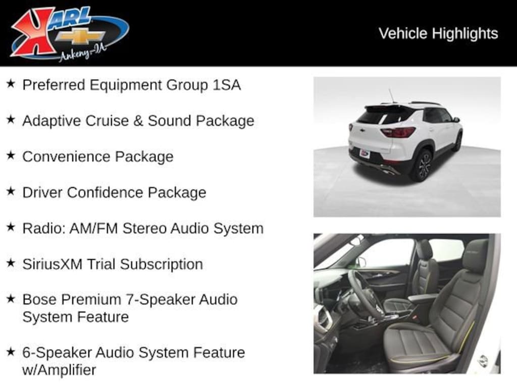 Factory MSRP: $35,920 $972 off MSRP! 26/29 City/Highway MPG 120-Volt Power Outlet, 2-Way Power Driver Lumbar Seat Adjuster, 4-Way Manual Front Passenger Seat Adjuster, Adaptive Cruise Control, Bose Premium 7-Speaker Audio System Feature, Cabin Humidity Sensor, Convenience Package, Driver Confidence Package, Dual-Pane Panoramic Power Sunroof, Evotex Seat Trim, Flat-Folding Front Passenger Seatback, Front Bucket Seats, Front Center Armrest, Hands Free Power Programmable Liftgate, Inside Rear-View Auto-Dimming Mirror, Preferred Equipment Group 1SA, Radio: AM/FM Stereo Audio System, Rear Cross Traffic Alert, Rear Park Assist, Single-Zone Automatic Climate Control, SiriusXM Trial Subscription, Split folding rear seat, Wheels: 17 High Gloss Black Machined Aluminum, Wireless Apple CarPlay/Android Auto, Wireless Charging.