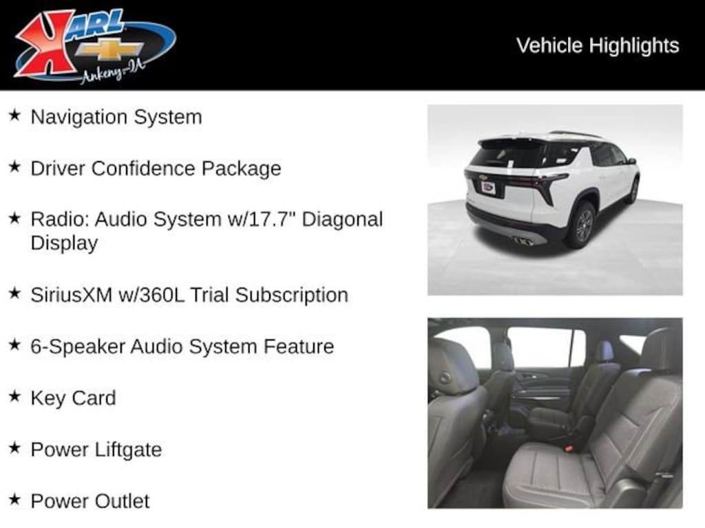 Factory MSRP: $45,920 AWD, 3rd row seats: split-bench, 4-Way Manual Front Passenger Seat Adjuster, 6-Speaker Audio System Feature, Apple CarPlay/Android Auto, Driver Confidence Package, Front Bucket Seats, Front Center Armrest, HD Surround Vision, Heated Driver & Front Passenger Seats, Key Card, Navigation System, Power Liftgate, Power Outlet, Radio: Audio System w/17.7 Diagonal Display, Rear Camera Mirror, Rear Pedestrian Alert, SiriusXM w/360L Trial Subscription, Traffic Sign Recognition, Wheels: 18 Grazen Metallic Machined-Face Aluminum.