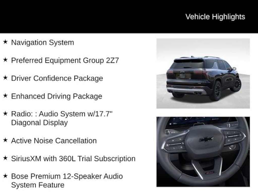 Elevate your driving experience with the cutting-edge technology features of the 2026 Traverse Z71. Enjoy the convenience of the Bose premium 12-speaker audio system, the intuitive navigation system, and the seamless integration of Apple CarPlay and Android Auto. Stay connected and informed with the 17.7-inch diagonal display and the 3-year OnStar One trial subscription.