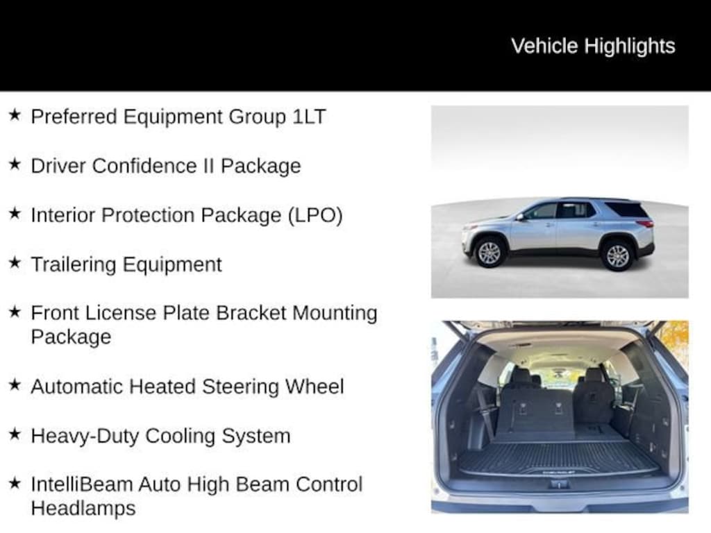 Certified.Silver Ice Metallic LT AWD 3.6L V6 SIDI VVT1st & 2nd Row All-Weather Floor Mats, 3rd Row All-Weather Floor Mats, All-Weather Cargo Mat (LPO), Automatic Emergency Braking, Automatic Heated Steering Wheel, Driver Confidence II Package, Following Distance Indicator, Forward Collision Alert, Front License Plate Bracket Mounting Package, Front Pedestrian Braking, Heavy-Duty Cooling System, Hitch Guidance w/Hitch View, IntelliBeam Auto High Beam Control Headlamps, Interior Protection Package (LPO), Lane Keep Assist w/Lane Departure Warning, Preferred Equipment Group 1LT, Trailering Assist Guidelines, Trailering Equipment.Here at Karl Chevrolet of Stuart we want to help you find the best vehicle to suit your needs. With our huge selection of new and pre-owned vehicles, we're sure to have the right car for you! We pride ourselves on creating a friendly buying experience and earning the title of Your Dealer for Life. Give us a call at 515.523.1201 and speak to our experts to find out just how easy it is to get the vehicle of your dreams!*Equipment and options are generated by a 3rd party vendor, exact vehicle options may vary. Please see a salesperson for complete details and vehicle information.Clean CARFAX. CARFAX One-Owner. Odometer is 14893 miles below market average!Certification Program Details: Karl Chevrolet of Stuart, your newest CarBravo dealer, where platinum quality vehicles and unmatched benefits come together! -Comprehensive Limited Bumper to Bumper Warranty. -24/7 Roadside Assistance: -Multi-Point Vehicle Inspection: Every vehicle undergoes a Platinum Quality Certified Inspection known throughout the industry to ensure top quality. -Vehicle Exchange Program. Within 10-Days and 500 miles -Complimentary Vehicle History Report -Nationwide Dealer Network Support: Enjoy the backing of the extensive CarBravo and GM dealership network. -OnStar and SiriusXM Trials: Enjoy connected services and entertainment with included trial subscriptions. -Terms and conditions may apply. With every vehicle purchased, you'll enjoy the peace of mind that comes with a limited warranty, 24/7 roadside assistance, and a comprehensive vehicle inspection.