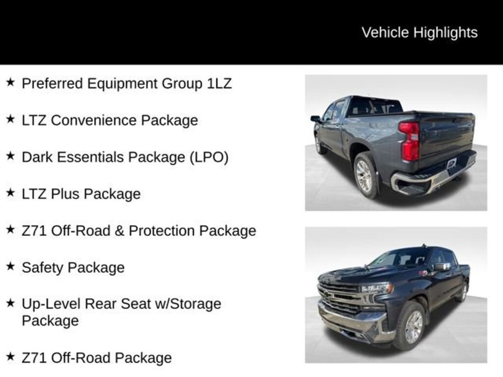 Certified.Shadow Gray Metallic LTZ 4WD 3.0L I610-Way Power Driver Seat w/Lumbar, 10-Way Power Passenger Seat Adjuster w/Lumbar, 12-Volt Rear Auxiliary Power Outlet, 120-Volt Bed Mounted Power Outlet, 120-Volt Instrument Panel Power Outlet, 2 USB Ports, 2 USB Ports (First Row), 4.2 Diagonal Color Display Driver Info Center, 4G LTE Wi-Fi Hot Spot Capable, 6-Speaker Audio System, Advanced Trailering System, All-Weather Floor Liner (LPO) (AAK), Auto-Dimming Inside Rear-View Mirror, Auto-Locking Rear Differential, Auxiliary External Transmission Oil Cooler, Black Name Plates (LPO), Bluetooth® For Phone, Chevrolet Connected Access Capable, Chevytec Spray-On Black Bedliner, Chrome Grille, Chrome Mirror Caps, Color-Keyed Carpeting Floor Covering, Compass, Dark Essentials Package (LPO), Deep-Tinted Glass, Driver Memory, Dual Exhaust w/Polished Outlets, Electric Rear-Window Defogger, Electrical Lock Control Steering Column, Electronic Cruise Control, Floor Mounted Center Console, Front Frame-Mounted Black Recovery Hooks, Front LED Fog Lamps, Front Rubberized Vinyl Floor Mats, HD Rear Vision Camera, Heated Driver & Front Outboard Passenger Seats, Heated Steering Wheel, Heavy-Duty Air Filter, Hill Descent Control, Hitch Guidance, Hitch Guidance w/Hitch View, Integrated Trailer Brake Controller, Keyless Open & Start, Lane Change Alert w/Side Blind Zone Alert, Leather Wrapped Steering Wheel, LED Cargo Area Lighting, LTZ Convenience Package, LTZ Plus Package, Manual Tilt/Telescoping Steering Column, Off-Road Suspension, OnStar & Chevrolet Connected Services Capable, Outside Heated Power-Adjustable Mirrors, Perimeter Lighting, Power Door Locks, Power Front Passenger Windows w/Express Up/Down, Power Front Windows w/Driver Express Up/Down, Power Rear Windows w/Express Down, Power Sliding Rear Window w/Rear Defogger, Power Tailgate, Preferred Equipment Group 1LZ, Rear Cross Traffic Alert, Rear Dual USB Charging-Only Ports, Rear Rubberized-Vinyl Floor Mats, Rear Wheelhouse Liners, Remote Vehicle Starter System, Safety Package, SiriusXM w/360L, Standard Tailgate, Steering Wheel Audio Controls, Theft Deterrent System (Unauthorized Entry), Trailering Package, Ultrasonic Front & Rear Park Assist, Universal Home Remote, Up-Level Rear Seat w/Storage Package, Ventilated Driver & Front Passenger Seats, Wireless Phone Projection, Z71 Off-Road & Protection Package, Z71 Off-Road Package.Here at Karl Chevrolet of Stuart we want to help you find the best vehicle to suit your needs. With our huge selection of new and pre-owned vehicles, we're sure to have the right car for you! We pride ourselves on creating a friendly buying experience and earning the title of Your Dealer for Life. Give us a call at 515.523.1201 and speak to our experts to find out just how easy it is to get the vehicle of your dreams!*Equipment and options are generated by a 3rd party vendor, exact vehicle options may vary. Please see a salesperson for complete details and vehicle information.Clean CARFAX. Odometer is 12240 miles below market average! 22/26 City/Highway MPGCertification Program Details: Karl Chevrolet of Stuart, your newest CarBravo dealer, where platinum quality vehicles and unmatched benefits come together! -Comprehensive Limited Bumper to Bumper Warranty. -24/7 Roadside Assistance: -Multi-Point Vehicle Inspection: Every vehicle undergoes a Platinum Quality Certified Inspection known throughout the industry to ensure top quality. -Vehicle Exchange Program. Within 10-Days and 500 miles -Complimentary Vehicle History Report -Nationwide Dealer Network Support: Enjoy the backing of the extensive CarBravo and GM dealership network. -OnStar and SiriusXM Trials: Enjoy connected services and entertainment with included trial subscriptions. -Terms and conditions may apply. With every vehicle purchased, you'll enjoy the peace of mind that comes with a limited warranty, 24/7 roadside assistance, and a comprehensive vehicle inspection.
