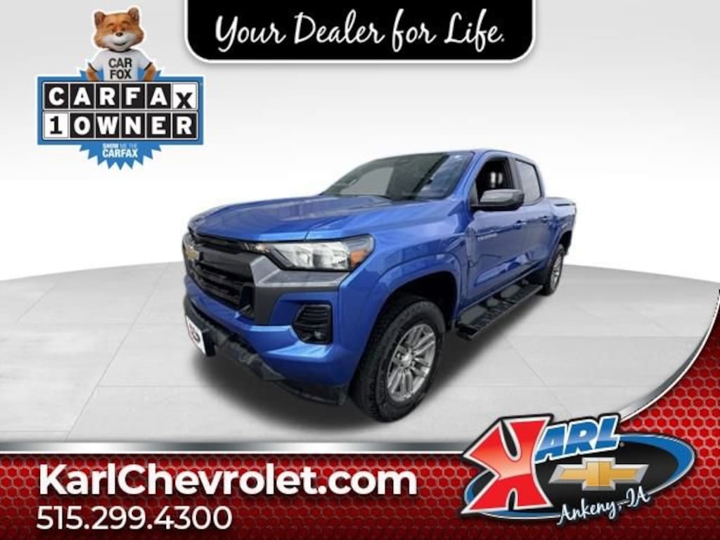 Recent Arrival! Clean CARFAX. Glacier Blue Metallic 2023 Chevrolet Colorado LT CREW LT 2.7L Turbo 4WD. 19/23 City/Highway MPG 8-Speed Automatic 4WDAt Karl Chevrolet we want to help you find the best new or used car in Ankeny that suits your needs. Check out the 2023 Chevrolet Colorado For Sale in Ankeny, IA. When you buy a new car at Karl Chevrolet you know you're finding a vehicle you can rely on. We have a great selection of Platinum Quality Pre-Owned Vehicles. We also pride ourselves in creating a friendly atmosphere and reliable new car dealership that you can trust. Call us with any questions about our 2023 Chevrolet Colorado and our experts will be glad to help you! (515) 299-4300. *Equipment and options are generated by a 3rd party vendor, exact vehicle options may vary. Please see a salesperson for complete details and vehicle information.