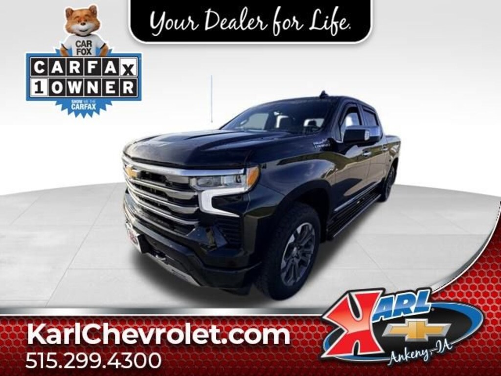 Recent Arrival! CARFAX One-Owner. Clean CARFAX. Black 2023 Chevrolet Silverado 1500 High Country EcoTec3 5.3L V8 10-Speed Automatic, 4WD, Jet Black/Umber Leather. 16/20 City/Highway MPG 10-Speed Automatic 4WDAt Karl Chevrolet we want to help you find the best new or used car in Ankeny that suits your needs. Check out the 2023 Chevrolet Silverado 1500 For Sale in Ankeny, IA. When you buy a new car at Karl Chevrolet you know you're finding a vehicle you can rely on. We have a great selection of Platinum Quality Pre-Owned Vehicles. We also pride ourselves in creating a friendly atmosphere and reliable new car dealership that you can trust. Call us with any questions about our 2023 Chevrolet Silverado 1500 and our experts will be glad to help you! (515) 299-4300. *Equipment and options are generated by a 3rd party vendor, exact vehicle options may vary. Please see a salesperson for complete details and vehicle information.
