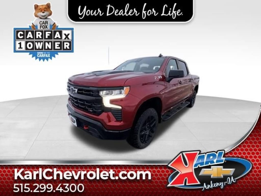 Recent Arrival! CARFAX One-Owner. Clean CARFAX. Radiant Red Tintcoat 2024 Chevrolet Silverado 1500 LT Trail Boss 4WD CREW CAB 147 LT EcoTec3 5.3L V8 10-Speed Automatic, 4WD, Black Leather. 15/18 City/Highway MPG 10-Speed Automatic 4WDAt Karl Chevrolet we want to help you find the best new or used car in Ankeny that suits your needs. Check out the 2024 Chevrolet Silverado 1500 For Sale in Ankeny, IA. When you buy a new car at Karl Chevrolet you know you're finding a vehicle you can rely on. We have a great selection of Platinum Quality Pre-Owned Vehicles. We also pride ourselves in creating a friendly atmosphere and reliable new car dealership that you can trust. Call us with any questions about our 2024 Chevrolet Silverado 1500 and our experts will be glad to help you! (515) 299-4300. *Equipment and options are generated by a 3rd party vendor, exact vehicle options may vary. Please see a salesperson for complete details and vehicle information.