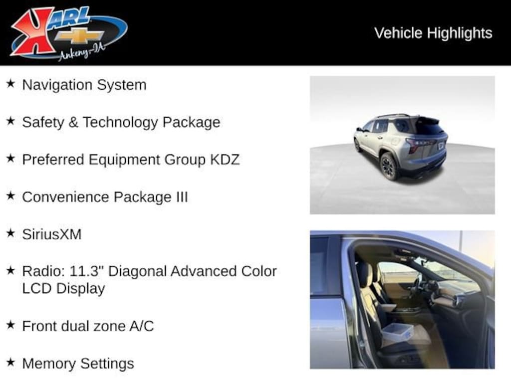 Certification Program Details: Karl Chevrolet of Ankeny, The Nation's #1 CarBravo Certified Dealer! Every CarBravo Certified vehicle includes: Comprehensive 126-Point Inspection Professionally inspected by factory-trained technicians to meet strict mechanical, safety, and cosmetic standards. 12-Month / 12,000-Mile Bumper-to-Bumper Limited Warranty Enjoy added peace of mind with extensive coverage from the day you drive off the lot. 24/7 Roadside Assistance & Courtesy Transportation Flat tire? Dead battery? Need a tow? You're covered anywhere, anytime throughout the warranty period. Vehicle History & Title Guarantee Clean title, completed safety recalls, and a full CARFAX® or AutoCheck® report provided for complete transparency. 10-Day / 500-Mile Exchange Promise If you don't absolutely love it, bring it back and exchange it no hassle, no stress. Experience peace of mind and premium protection exclusively from Karl Chevrolet of Ankeny, the Nation's #1 CarBravo Dealer!