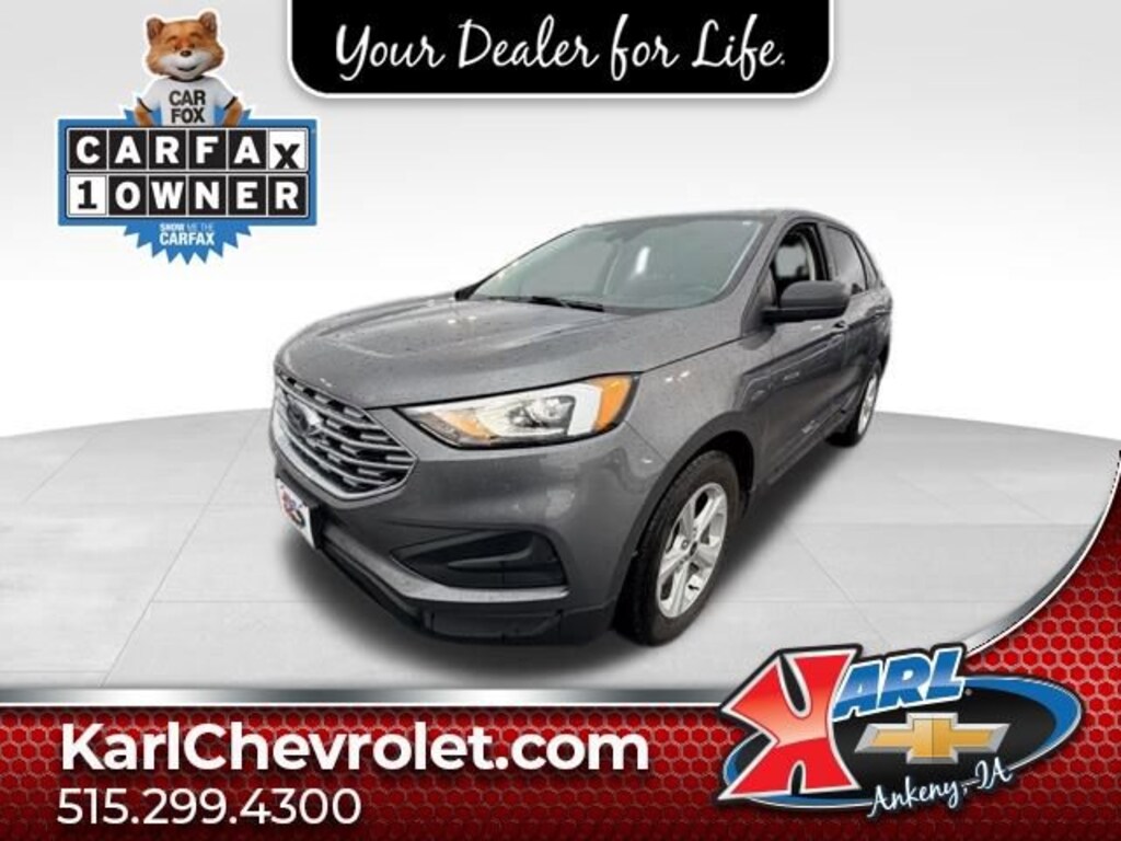 Recent Arrival! Clean CARFAX. Gray 2021 Ford Edge SE SE AWD EcoBoost 2.0L I4 GTDi DOHC Turbocharged VCT AWD. 21/28 City/Highway MPG 8-Speed Automatic AWDAt Karl Chevrolet we want to help you find the best new or used car in Ankeny that suits your needs. Check out the 2021 Ford Edge For Sale in Ankeny, IA. When you buy a new car at Karl Chevrolet you know you're finding a vehicle you can rely on. We have a great selection of Platinum Quality Pre-Owned Vehicles. We also pride ourselves in creating a friendly atmosphere and reliable new car dealership that you can trust. Call us with any questions about our 2021 Ford Edge and our experts will be glad to help you! (515) 299-4300. *Equipment and options are generated by a 3rd party vendor, exact vehicle options may vary. Please see a salesperson for complete details and vehicle information.