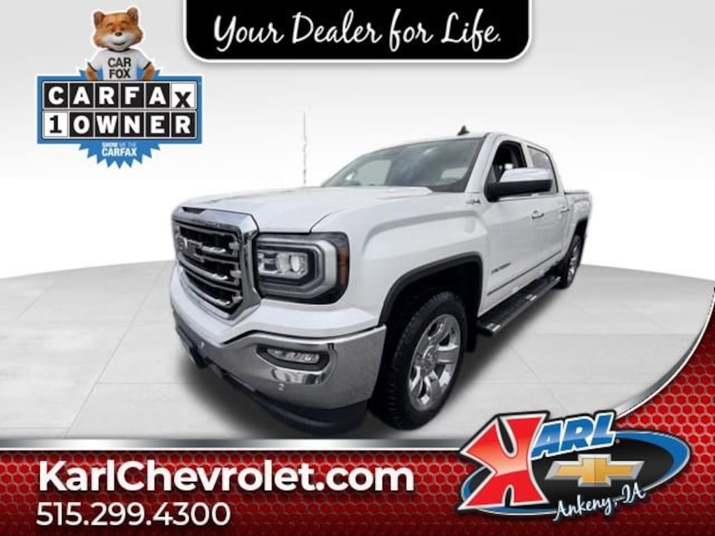 Recent Arrival! CARFAX One-Owner. Clean CARFAX. White Frost Tricoat 2018 GMC Sierra 1500 SLT 4WD CREW CAB 143.5 SLT EcoTec3 5.3L V8 8-Speed Automatic with Overdrive, 4WD, Cocoa/Dune Leather. 15/20 City/Highway MPG 8-Speed Automatic with Overdrive 4WDAt Karl Chevrolet we want to help you find the best new or used car in Ankeny that suits your needs. Check out the 2018 GMC Sierra 1500 For Sale in Ankeny, IA. When you buy a new car at Karl Chevrolet you know you're finding a vehicle you can rely on. We have a great selection of Platinum Quality Pre-Owned Vehicles. We also pride ourselves in creating a friendly atmosphere and reliable new car dealership that you can trust. Call us with any questions about our 2018 GMC Sierra 1500 and our experts will be glad to help you! (515) 299-4300. *Equipment and options are generated by a 3rd party vendor, exact vehicle options may vary. Please see a salesperson for complete details and vehicle information.