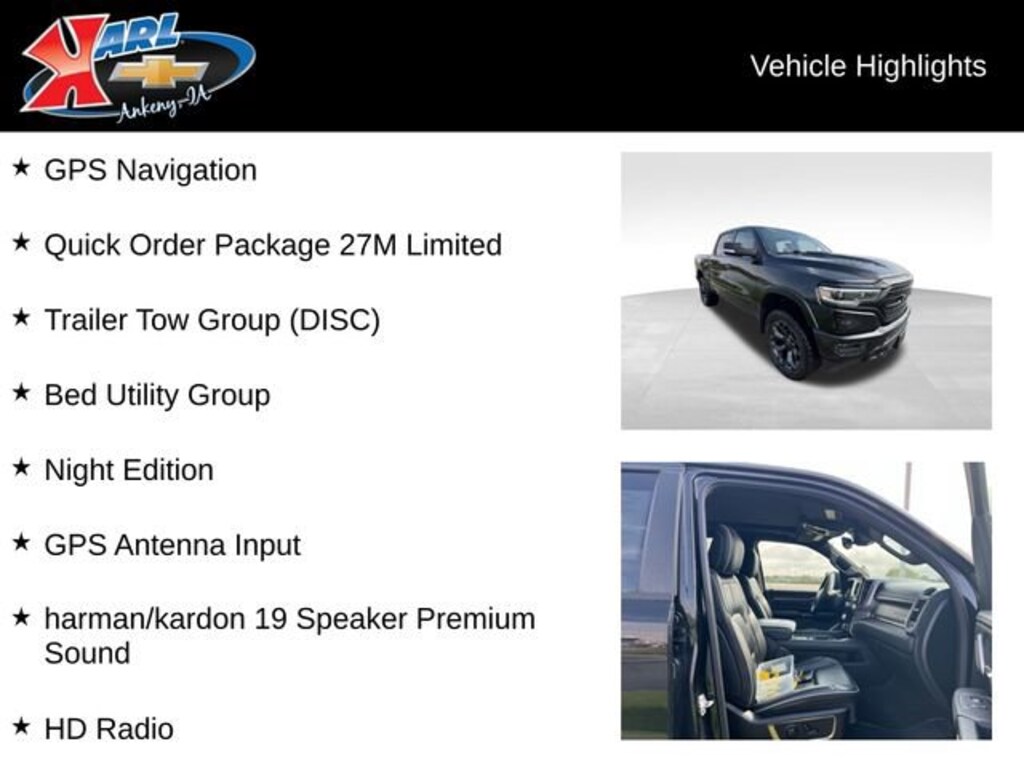 Recent Arrival! Certified. Local Trade! Equipped With Power Running Boards, Mud Flaps & Bed Liner! Diamond Black Crystal Pearlcoat 2021 Ram 1500 Limited LIMITED 4X4 CREW CAB 5'7 BOX HEMI 5.7L V8 Multi Displacement VVT 1-Yr SiriusXM Guardian Trial, 12 Touchscreen Display, 4G LTE Wi-Fi Hot Spot, Accent Color Premium Power Mirrors, Adjustable pedals, Apple CarPlay/Android Auto, Auto High-beam Headlights, Bed Utility Group, Black Day Light Opening Moldings, Black Exterior Truck Badging, Black Grille Surround Texture 7 Chrome, Black Headlamp Bezels, Black Painted Exterior Mirrors Caps, Body Color Door Handles, Body Color Front Bumper, Body Color Rear Bumper w/Step Pads, Disassociated Touchscreen Display, Dome Dual LED Reading Lamp, Dual Exhaust w/Black Tips, Dual-Pane Panoramic Sunroof, Front dual zone A/C, Google Android Auto, GPS Antenna Input, GPS Navigation, harman/kardon 19 Speaker Premium Sound, HD Radio, Heated front seats, Heated rear seats, Heated steering wheel, Integrated Center Stack Radio, Integrated Voice Command w/Bluetooth, LED Dome/Reading Lamp, Memory seat, MOPAR 4 Adjustable Cargo Tie-Down Hooks, MOPAR Deployable Bed Step, Multi-Function Tailgate, Night Edition, ParkView Rear Back-Up Camera, Pedal memory, Pick-Up Box Lighting, Power driver seat, Quick Order Package 27M Limited, Radio: Uconnect 12 w/Navigation, RAM Grille Badge - Black, SiriusXM Travel Link, SiriusXM w/360L, Sport Performance Hood, Tow Hooks, Trailer Brake Control, Trailer Light Check, Trailer Reverse Steering Control, Trailer Tire Pressure Monitoring System, Trailer Tow Group (DISC), Tri-Fold Tonneau Cover, USB Host Flip, Ventilated front seats, Wheels: 22 x 9 Black Aluminum. 15/21 City/Highway MPG 8-Speed Automatic 4WD