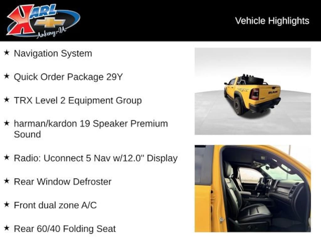 At Karl Chevrolet we want to help you find the best new or used car in Ankeny that suits your needs. When you buy a new car at Karl Chevrolet you know you're finding a vehicle you can rely on. We have a great selection of Platinum Quality Pre-Owned Vehicles. We also pride ourselves in creating a friendly atmosphere and a reliable Dealership that you can trust. Call us and our experts will be glad to help you! (515) 299-4300. *Equipment and options are generated by a 3rd party vendor, exact vehicle options may vary. Please see a salesperson for complete details and vehicle information.