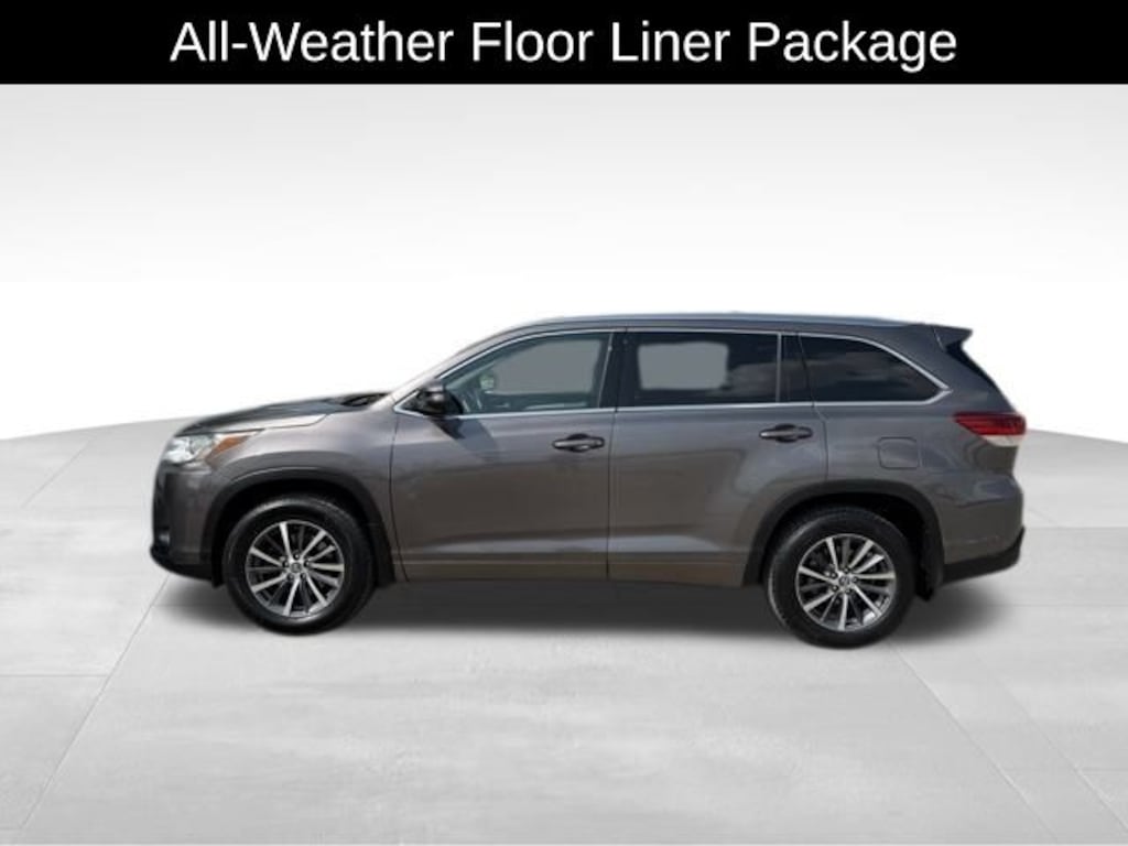 This 2018 Toyota Highlander comes equipped with, Highlander XLE, 4D Sport Utility, 3.5L V6, 8-Speed Automatic Electronic with ECT-i, AWD, Predawn Gray Mica, Ash Leather, 3.003 Axle Ratio, 3rd row seats: split-bench, 4-Wheel Disc Brakes, 6 Speakers, ABS brakes, Air Conditioning, All Weather Floor Liners, All-Weather Floor Liner Package, Alloy wheels, AM/FM radio: SiriusXM, Auto High-beam Headlights, Auto-dimming Rear-View mirror, Automatic temperature control, Brake assist, Bumpers: body-color, Cargo Tray, CD player, Delay-off headlights, Driver door bin, Driver vanity mirror, Dual front impact airbags, Dual front side impact airbags, Electronic Stability Control, Exterior Parking Camera Rear, Four wheel independent suspension, Front anti-roll bar, Front Bucket Seats, Front Center Armrest, Front dual zone A/C, Front fog lights, Front reading lights, Fully automatic headlights, Garage door transmitter, Heated door mirrors, Heated Front Bucket Seats, Heated front seats, Illuminated entry, Knee airbag, Leather Seat Trim, Leather Shift Knob, Low tire pressure warning, Navigation System, Occupant sensing airbag, Outside temperature display, Overhead airbag, Overhead console, Panic alarm, Passenger door bin, Passenger vanity mirror, Power door mirrors, Power driver seat, Power Liftgate, Power moonroof, Power passenger seat, Power steering, Power windows, Radio: Entune Premium Audio w/Nav & App Suite, Rear air conditioning, Rear anti-roll bar, Rear reading lights, Rear window defroster, Rear window wiper, Reclining 3rd row seat, Remote keyless entry, Roof rack: rails only, Seating for 8: 2nd Row 60/40 Bench Seat, Security system, Speed control, Speed-sensing steering, Split folding rear seat, Spoiler, Steering wheel mounted audio controls, Tachometer, Telescoping steering wheel, Tilt steering wheel, Traction control, Trip computer, Turn signal indicator mirrors, Variably intermittent wipers, Wheels: 18" Turbine-Look Alloy.